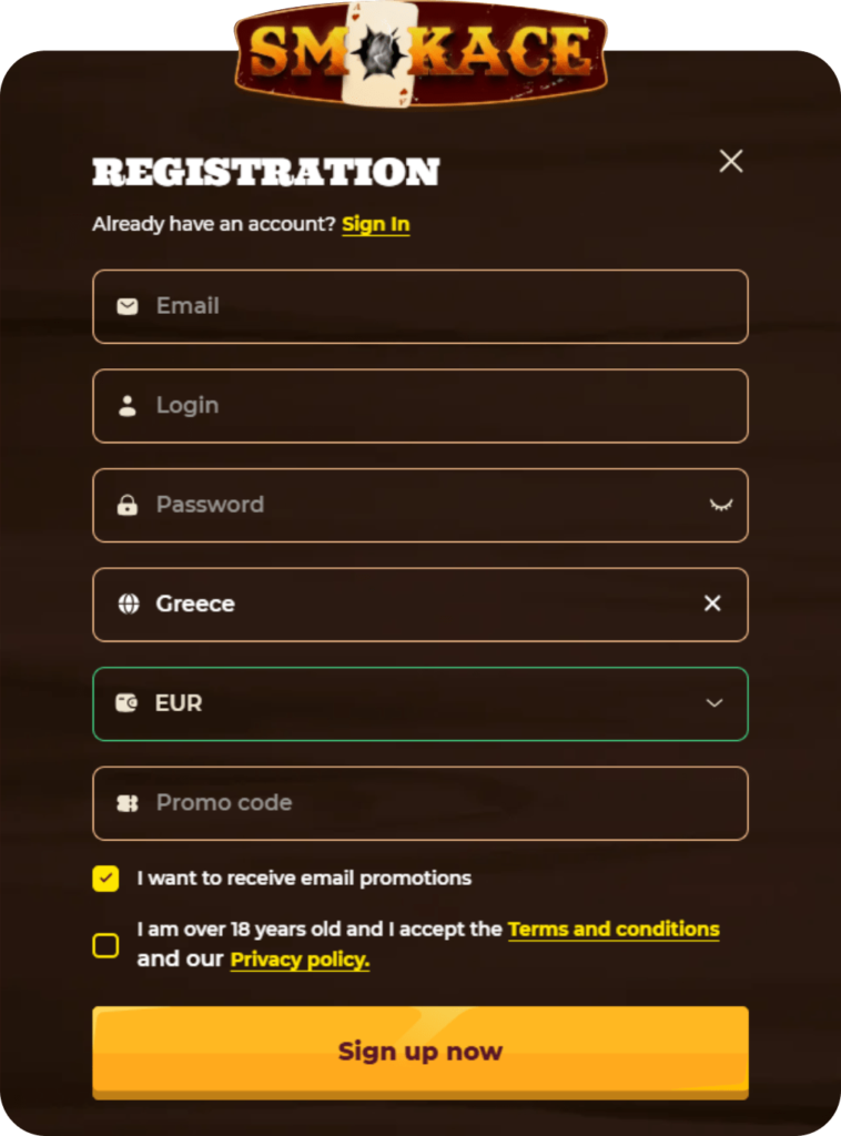 Once your email is verified, your profile activates instantly. There’s no need for full ID verification unless you plan to withdraw winnings later, which makes Smokace sign up fast and beginner-friendly.